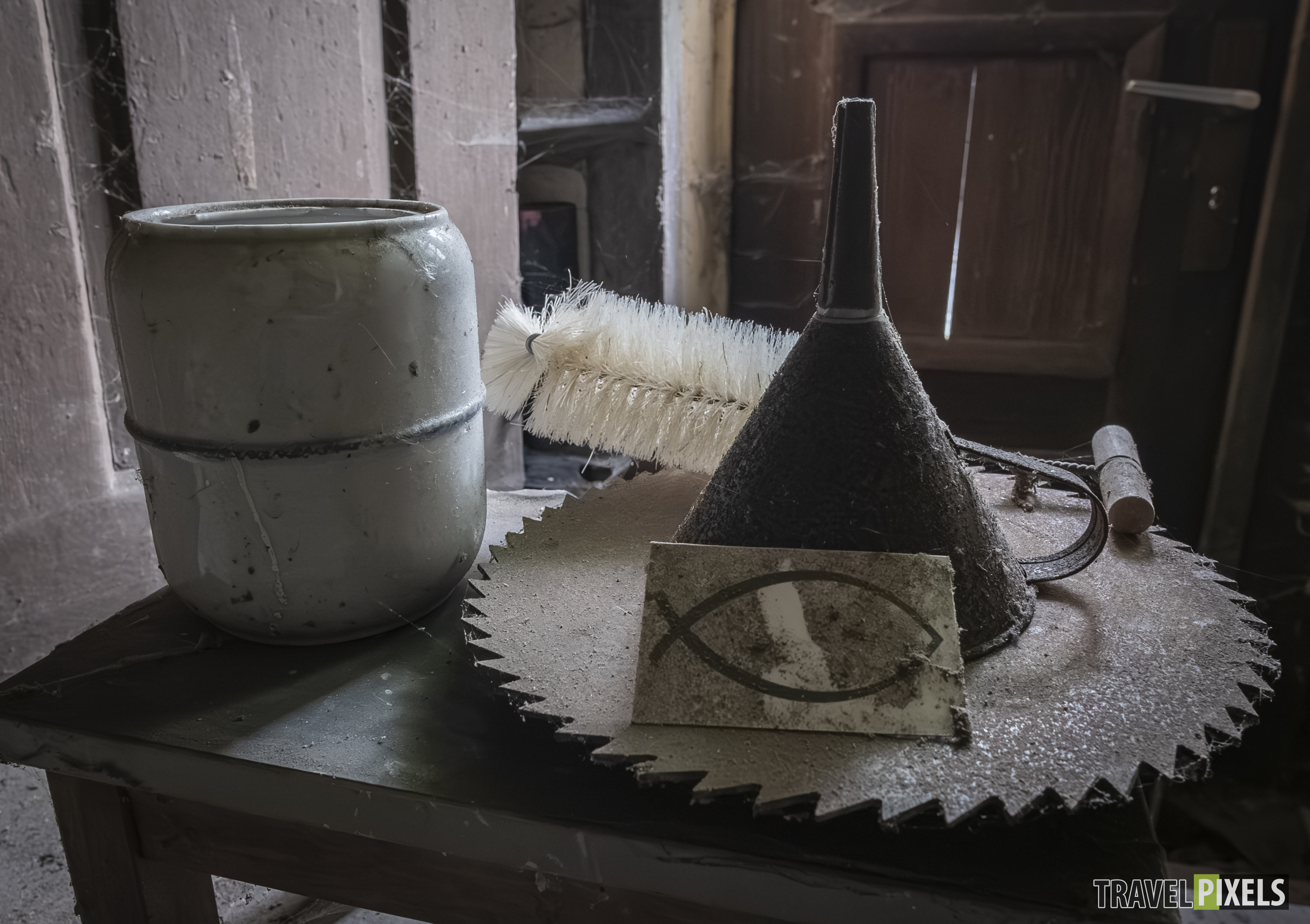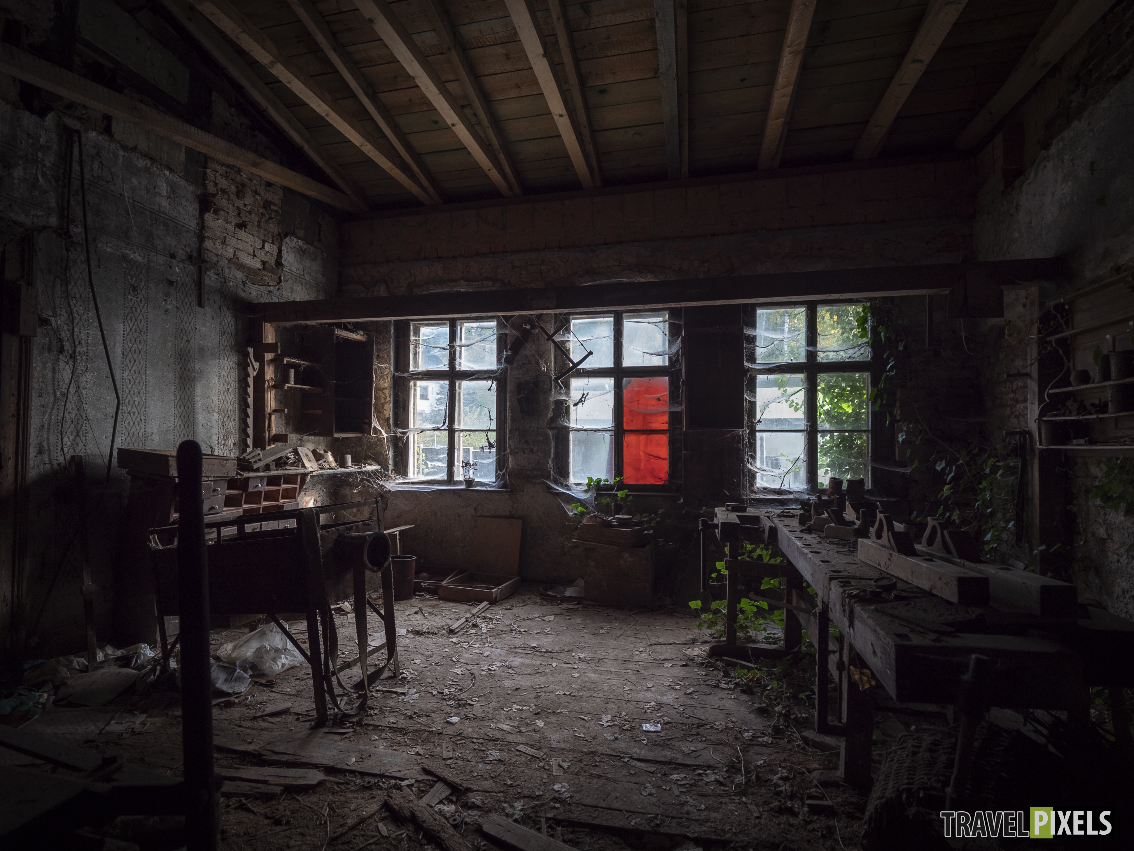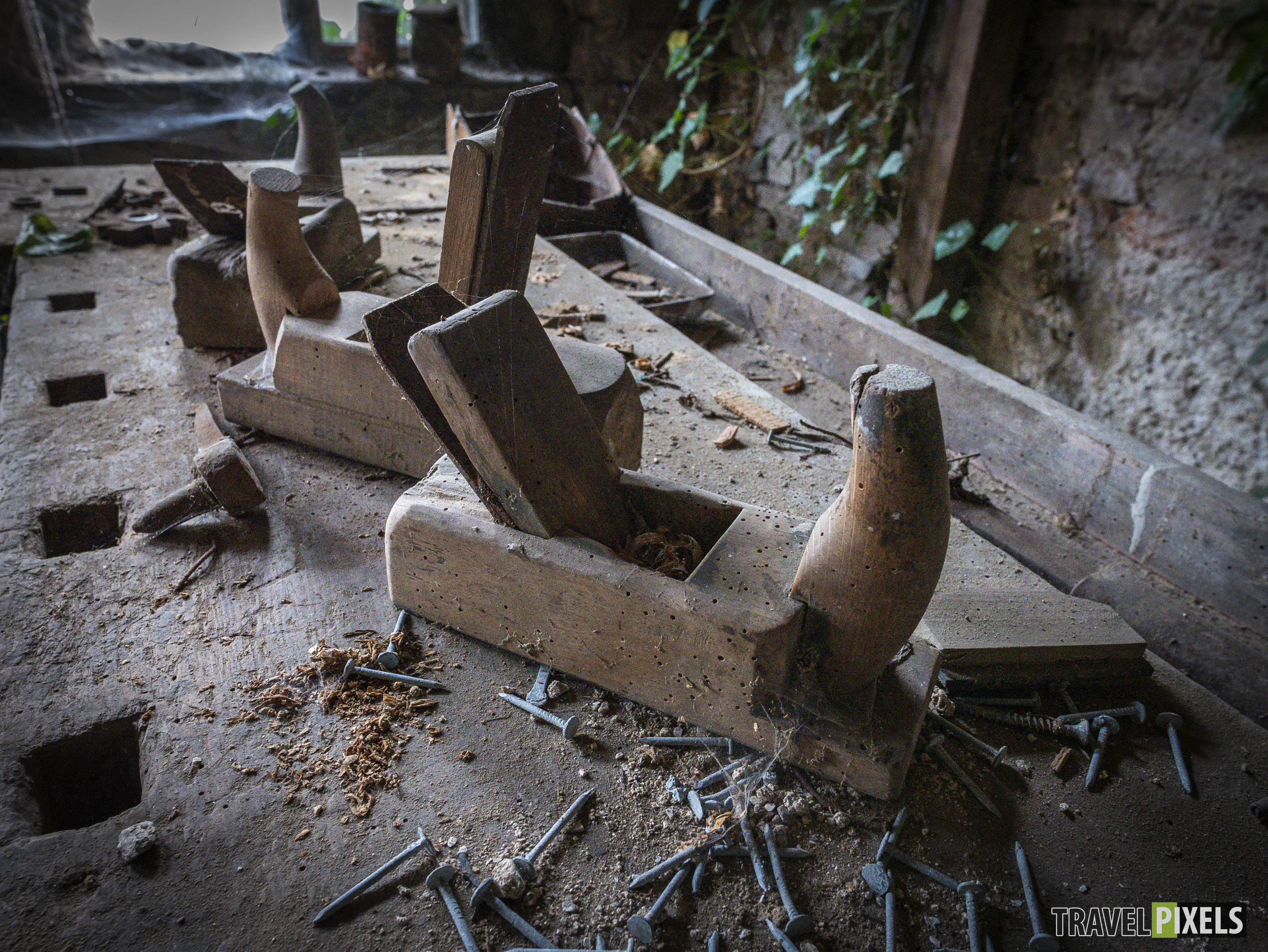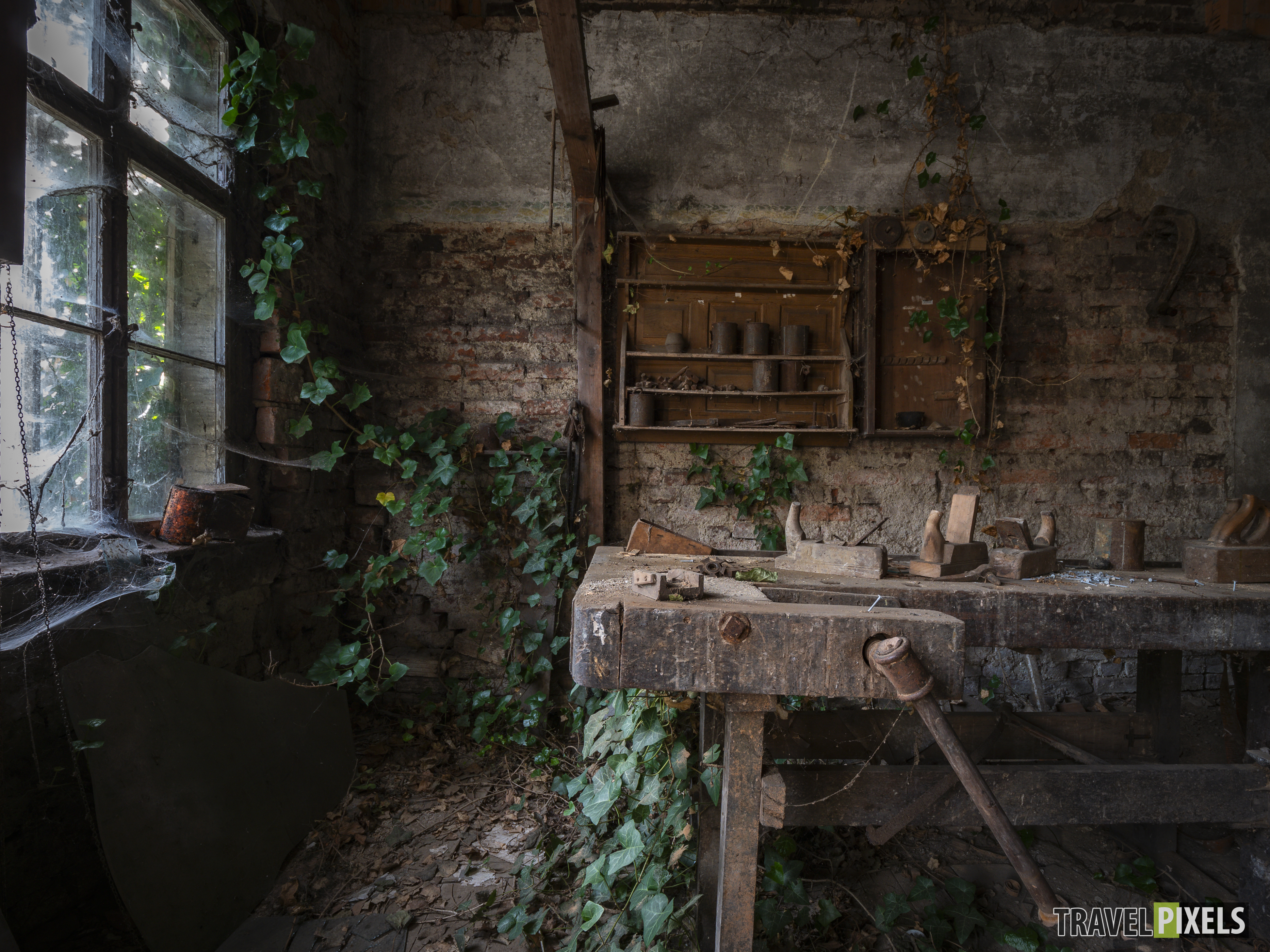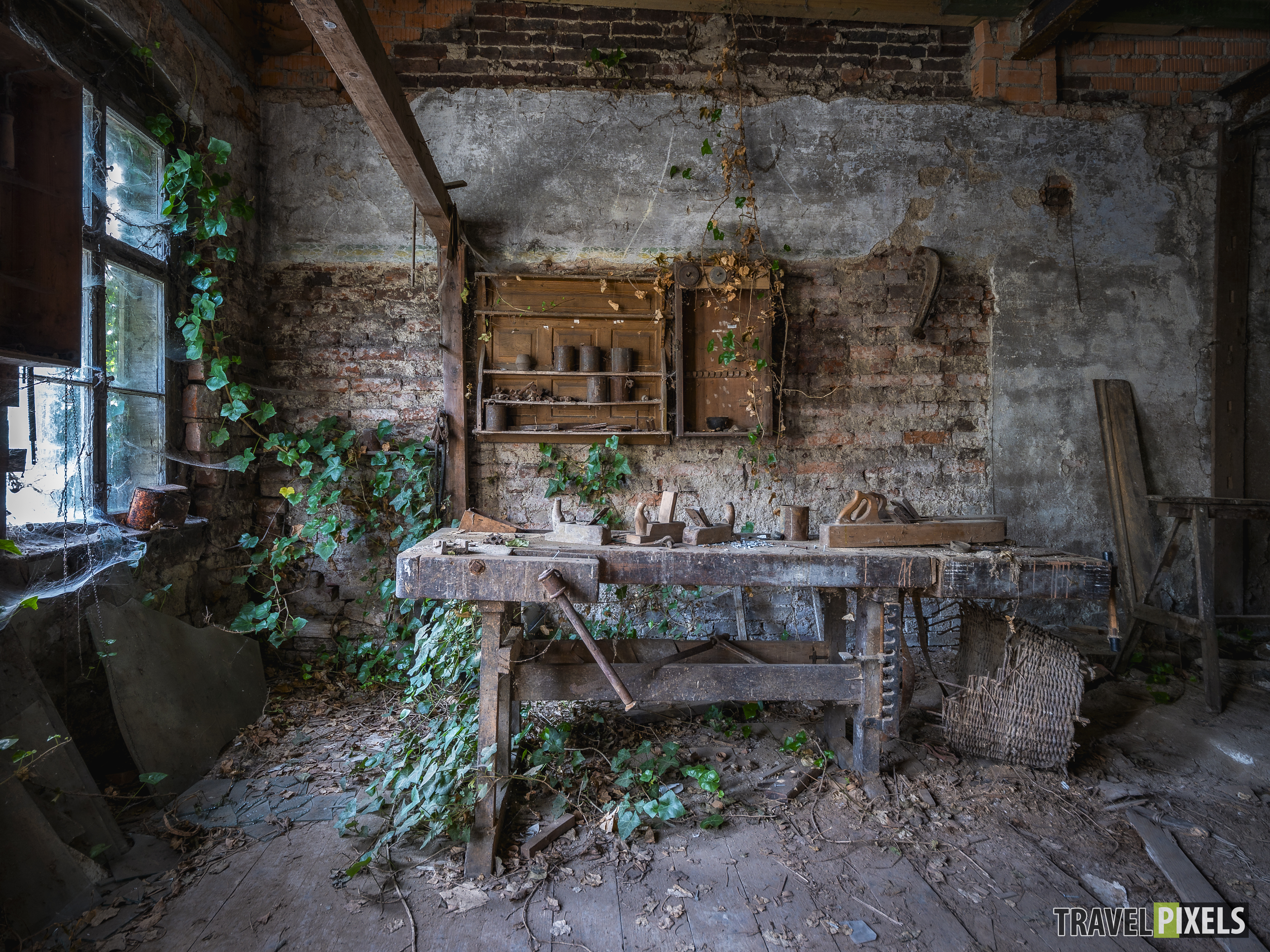 Das Haus des Tischlers Abgelegt unter : Lost Places Tours Dieser Lost Place stand lange auf unserer Liste, und endlich haben wir es geschafft, ihn zu besuchen! Mitten in einem kleinen Dorf liegt das verlassene Haus des Tischlers – eine wahre Zeitkapsel. Besonders faszinierend ist die alte Tischlerwerkstatt im Inneren, die über die Jahre zum teil unberührt geblieben ist. Der Efeu hat inzwischen begonnen, sich das Gebäude Stück für Stück zurückzuholen und verleiht der Werkstatt eine besondere Atmosphäre.